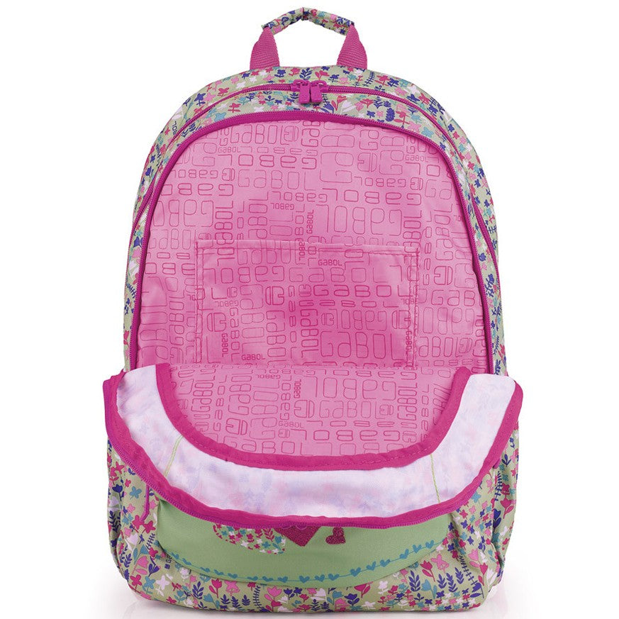 Разполага с две основни отделения с двоен цип, два предни джоба с цип и странични разтегливи джобове.