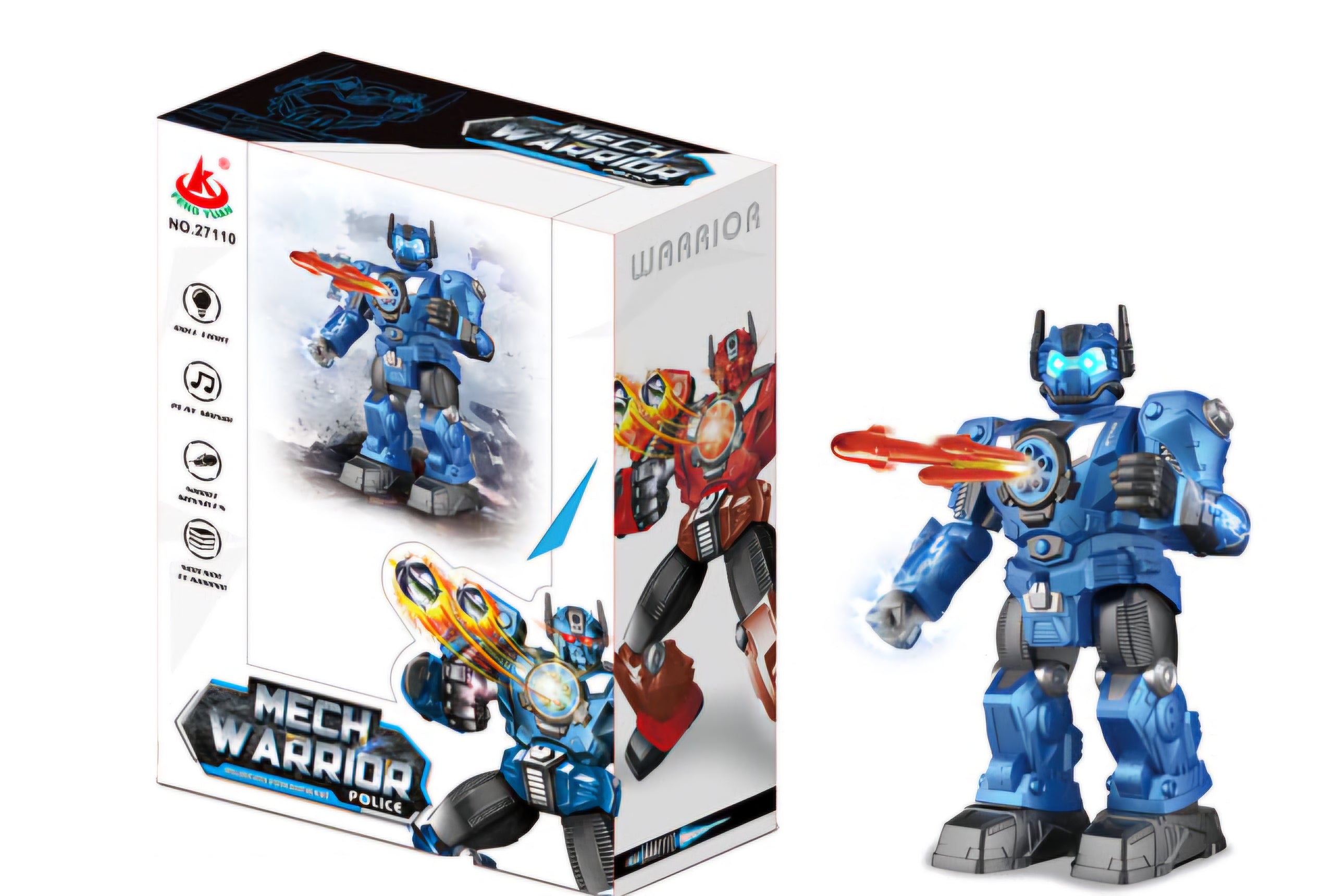 Този специален робот с инфраред контрол и светлини ще впечатли всяко момченце. Той изстрелва снаряди и движи ръцете си. Може да прави завой на дясно, завой наляво, да върви напред и назад, странично напред и странично назад. Функциите, които изпълнява са да пее, да стреля, да танцува, да спира и има демо бутон, в които вашето детенце ще се влюби.