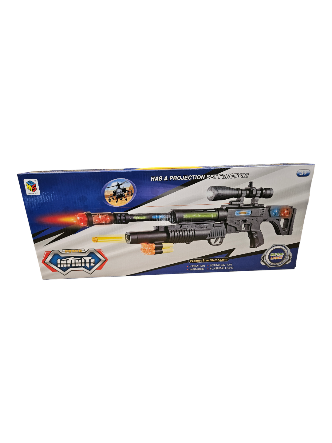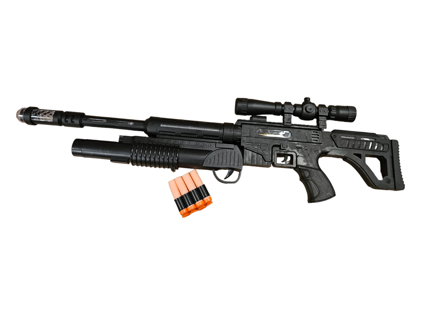 Бластер със меки стрели .Има звуци и светлини,лазер и фенерче.