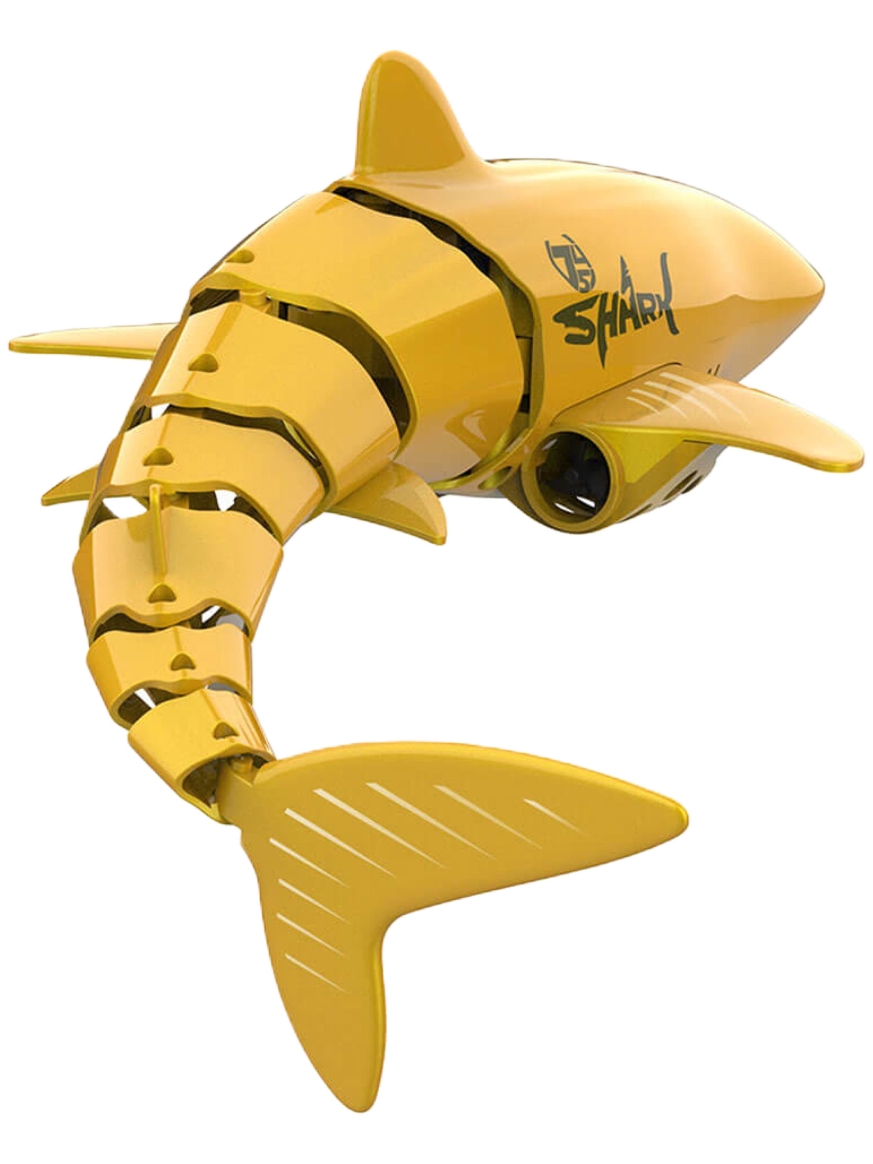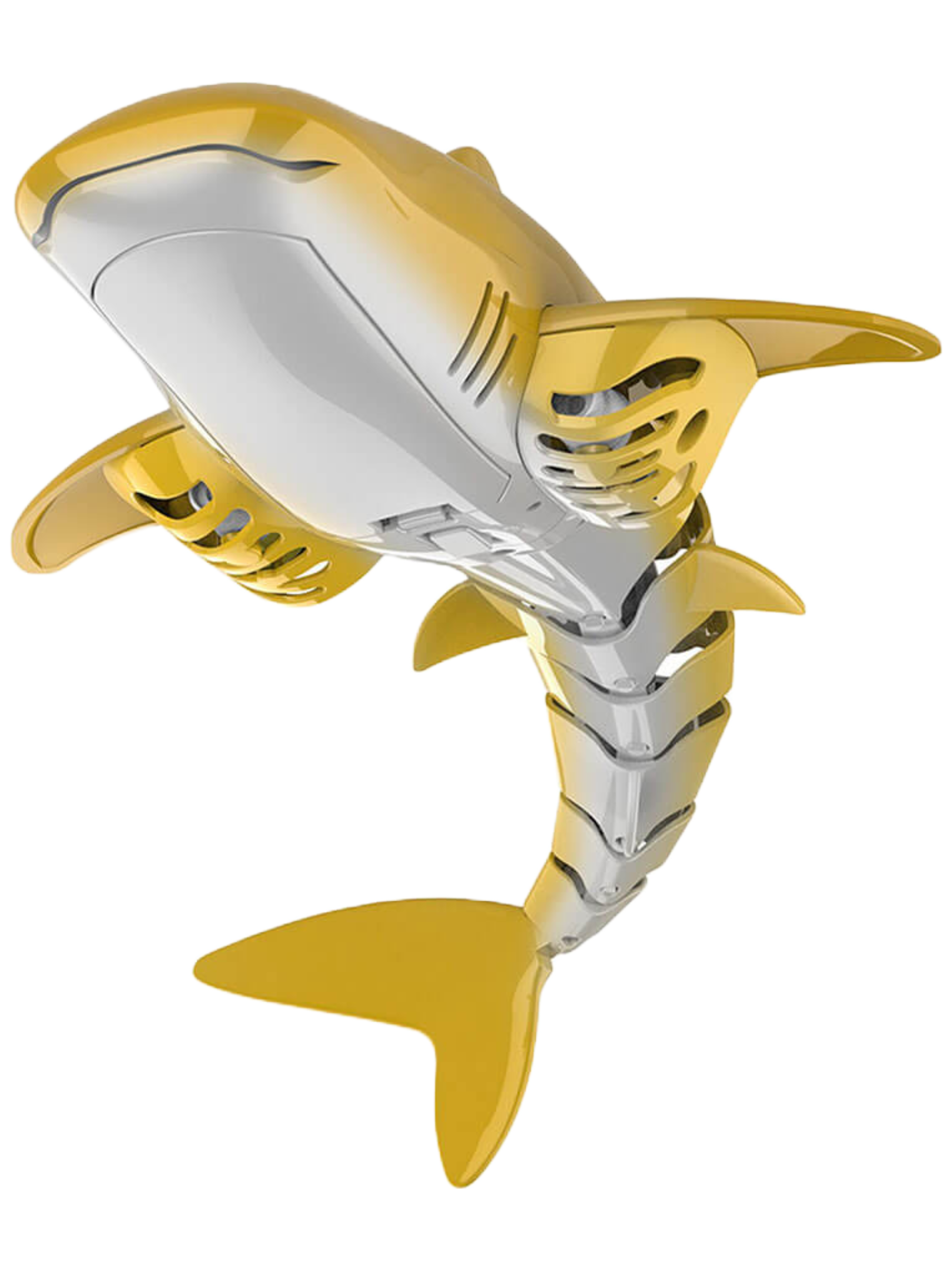 Акула е с дистанционно управление и акумулаторни батерии. Тази детска играчка работи с акумулаторен пакет необходими за захранването на акулата. Когато се изтощят батериите на рибата, те се зареждат чрез включеният в комплекта USB накрайник. Акумулаторният пакет също е включен в комплекта.