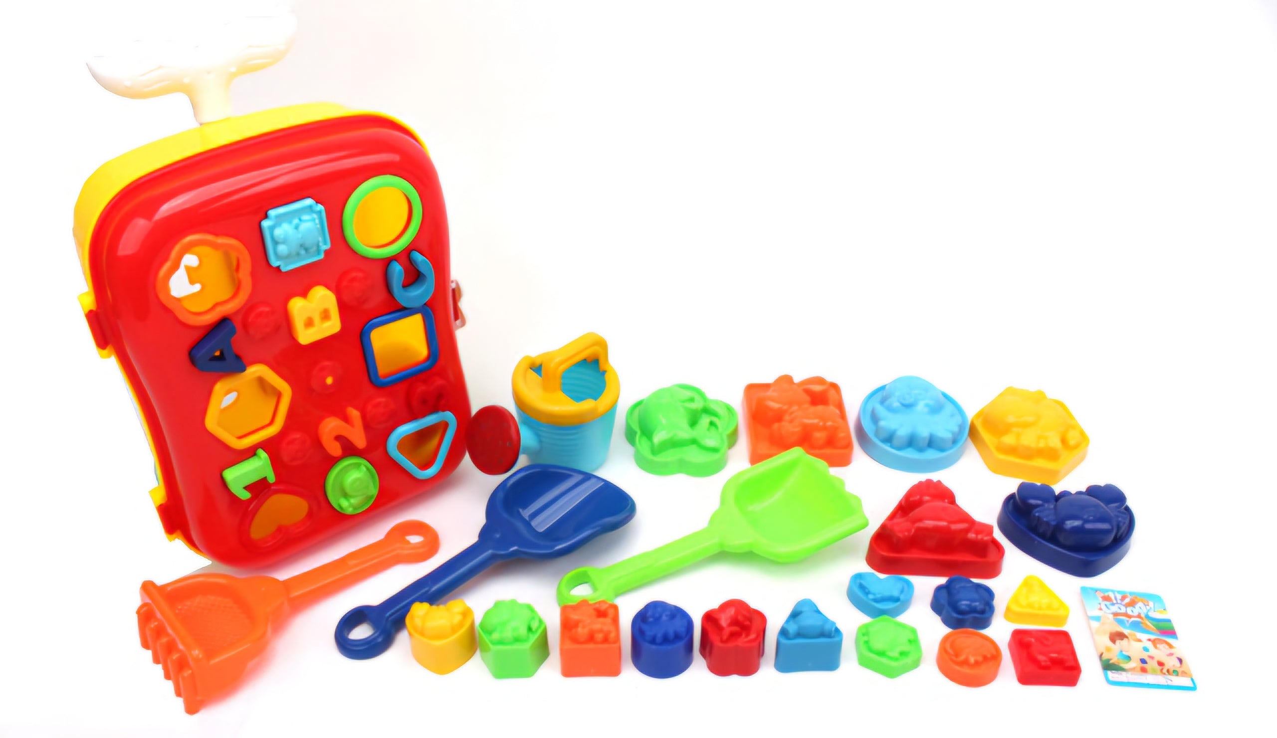 Детска играчка сортер -количка на колела с дръжка за дърпане .