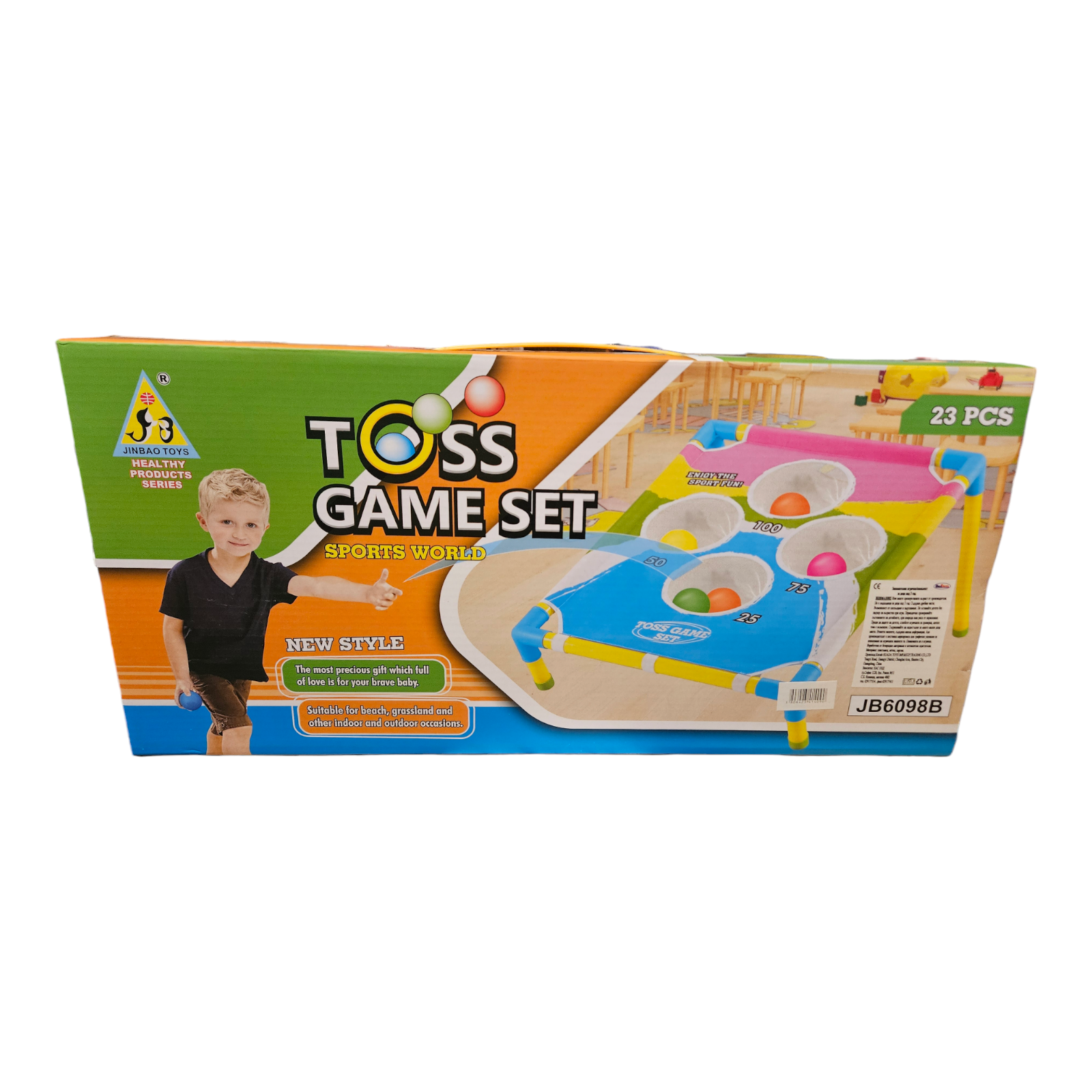 Семейна игра за точност и състезателен дух! Платното от хлъзгава материя има различни отвори, които трябва да се уцелят от разстояние с торбички. Играта е подходяща за игра от цялото семейство, както на закрито, така и на открито. Развива координацията и точността, общата моторика. Играта може да се улесни или затрудни според разстоянието, от което се хвърлят торбичките и според броя точки, който трябва да бъде достигнат. Подходяща за цялото семейство;Платно с крачета, четири торбички 23 части ;