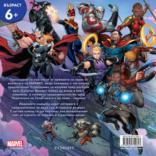 Присъедини се към някои от любимите си герои от вселената на МАРВЕЛ, за да изживееш с тях епични приключения! Спайдърмен се изправя пред досаден враг, Капитан Марвел трябва да влезе в бой с измамник, а голямото предизвикателство пред Пазителите на Галактиката е да пазят… тишина!
