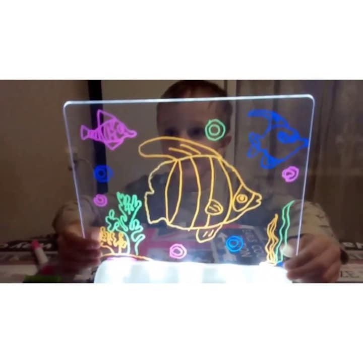 Представи си живописно творчество, създадено лично от детските ръце. Украси го с магическа светлина…Накарай го да свети в тъмното. Добави му много цвят. А за финал да направим така, че картинката да ОЖИВЕЕ в 3D! Новата 3DMagic Drawing Board се харесва от малки и големи деца, ползват я и за нощна лампа с желания и рисунки!