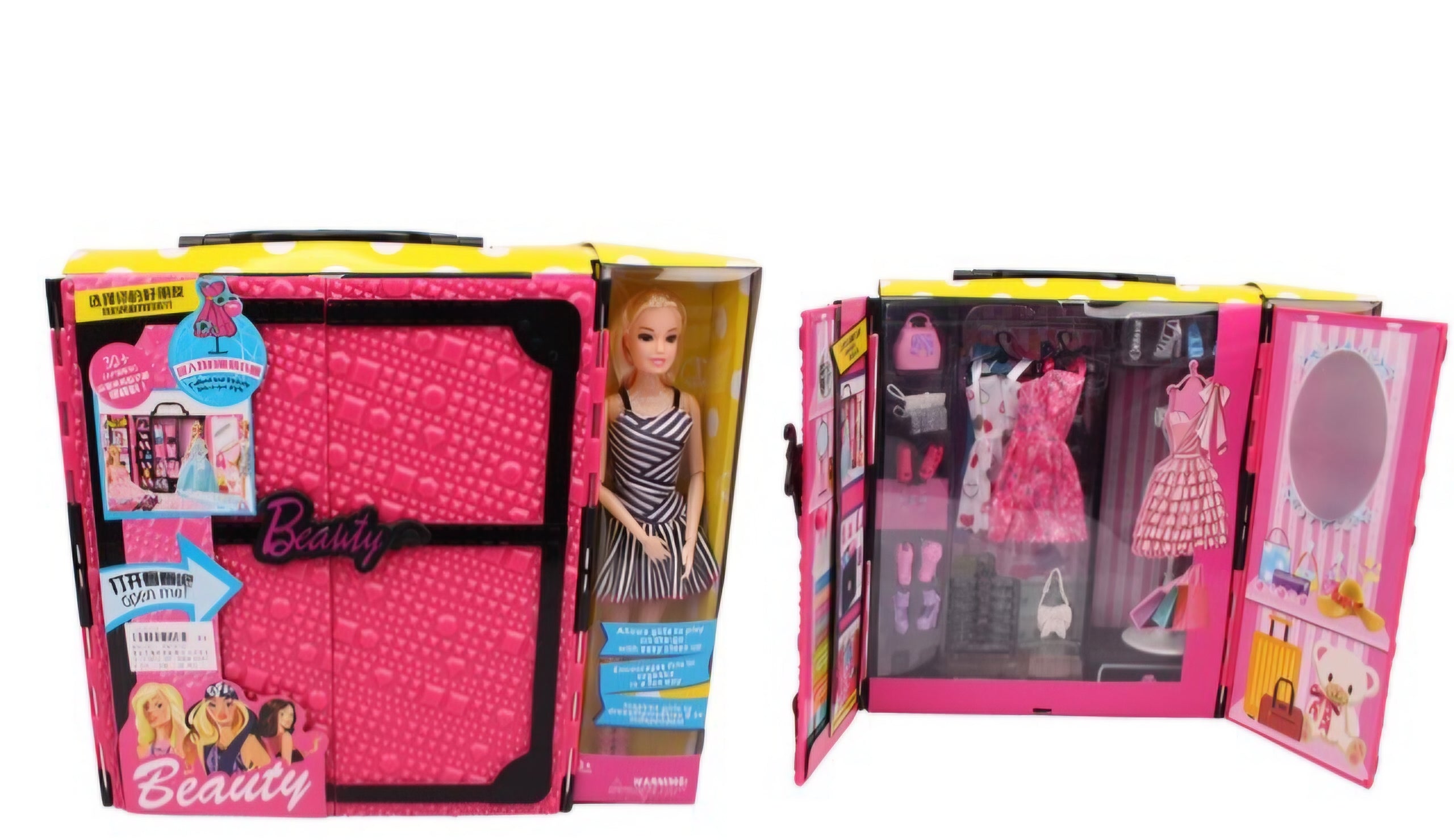 Тази играчка кукла с гардероб е чудесен комплект за деца, които обичат да се грижат за куклите си и да им сменят дрехите. Комплектът включва красива кукла, стилен гардероб, разнообразни дрехи и обувки, които позволяват на детето да създава различни визии и стилове за своята кукла.Куклата е с чупещи се ръце и крака за по-голяма здравина и удобство при игра .
