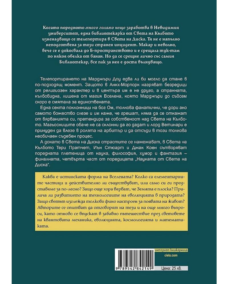 На пазара вече може да откриете последната част от поредицата „Науката в Света на Диска“, която един от най-продаваните британски писатели пише съвместно с учените Иън Стюърт и Джак Коен – „Науката от Света на Диска: Денят на Страшния съд“, в която паянтовата конструкция, наречена Земя, ще трябва да извоюва своето бъдеще.
